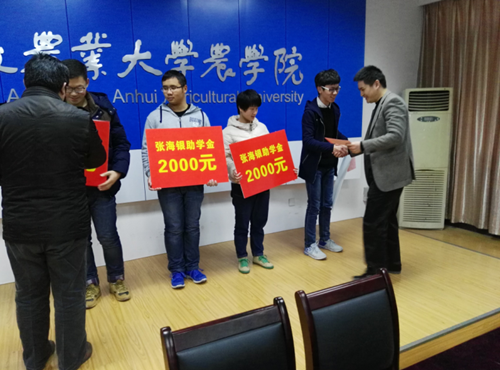 | 2015"張海銀助學(xué)金"發(fā)放座談會(huì )在安農大舉行 | ||