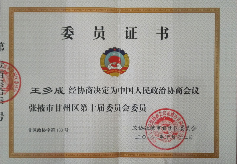 2011年張掖市甘州區政協(xié)第十屆委員